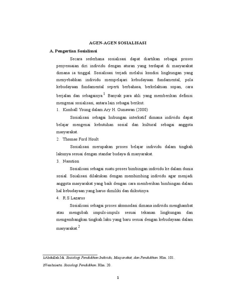 Di masyarakat, kita mengenal 4 agen sosialisasi utama, yaitu keluarga, kelompok teman sebaya/sepermainan, sekolah, dan media massa. Kemudian, jacobs, mengidentifikasikan empat agen sosialisasi utama, yaitu keluarga, kelompok bermain, media massa, dan pendidikan (sekolah). Agen sosialisasi tujuan sosialisasi dan fungsi sosialisasi rumpun ips.ada empat agen sosialisasi yang utama, yaitu keluarga, kelompok bermain, media massa, dan pada pada usia usia remaja, kelompok sepermainan berkembang menjadi kelompok persahabatan yang lebih luas. Agen sosialisasi remaja adalah pihak pihak yang melaksanakan atau melakukan sosial. Didalilkan dalam bentuk ini pada pertengahan abad kedua puluh, sosialisasi tetap menjadi konsep sentral khususnya dalam psikologi. Proses sosialisasi juga adalah proses pembentukan sikap loyalitas sosial. Agen sosialisasi politik meliputi keluarga, sekolah, teman sebaya atau teman sejawat (peer group), media massa, dan organisasi yang ada dalam masyarakat. Sosialisasi politik berlangsung tidak hanya pada usia dini dan remaja, tetapi tetap berlanjut sepanjang kehidupan. It telkom purwokerto memiliki sistem. Sosialisasi politik merupakan prakondisi bagi aktivitas sosial politik. Bukan dari keluarga saja tapi agen sosialisasi dari sekolah, media massa. Membuat warga memiliki pengetahuan politik d. Kelompok sosial pertama dimana individu menjadi anggotanya adalah keluarga.